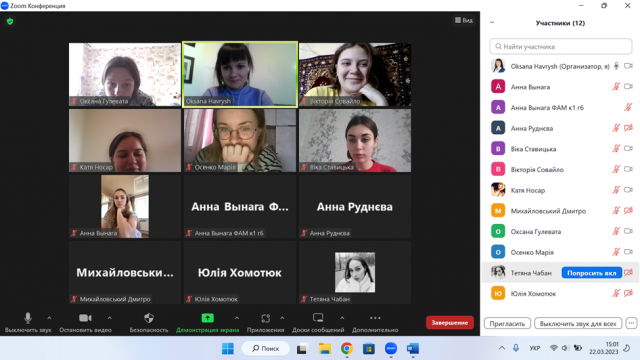 Зустріч здобувачів вищої освіти з наставником відбулася в дружній атмосфері. Студенти активно долучались до розмови та обговорення актуальних питань. Наприкінці зустрічі Оксана Миколаївна звернула увагу на необхідності піклуватися про себе, не ігнорувати сигнали повітряної тривоги та подякувала студентам за зустріч й побажала мирного неба над головою.