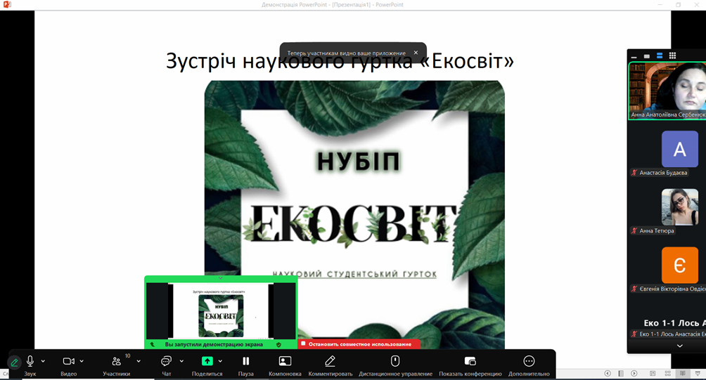 Онлайн-зустріч учасників наукового гуртка «Екосвіт»