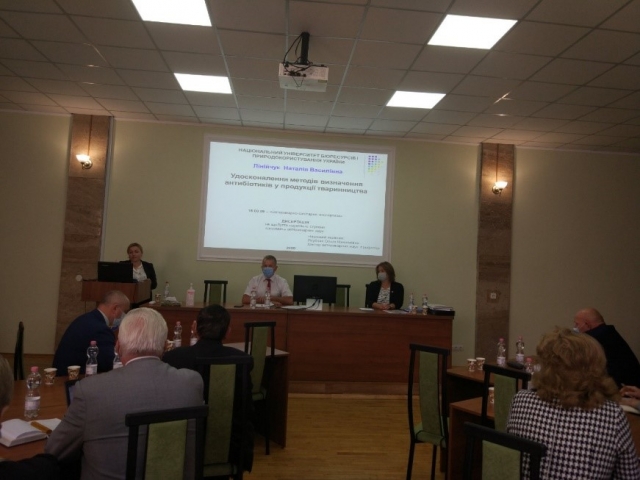 Другим питанням на порядку денному розглядали дисертаційну роботу Наталії Лінійчук, здобувача кафедри ветеринарної гігієни імені професора А. К. Скороходька на тему: «Удосконалення методів виявлення антибіотиків у продукції тваринництва», поданої на здобуття наукового ступеня кандидата ветеринарних наук зі спеціальності 16.00.09 – Ветеринарно-санітарна експертиза. Науковий керівник – Якубчак Ольга Миколаївна, д. вет. н., професор, професор кафедри ветеринарної гігієни імені професора А. К. Скороходька.