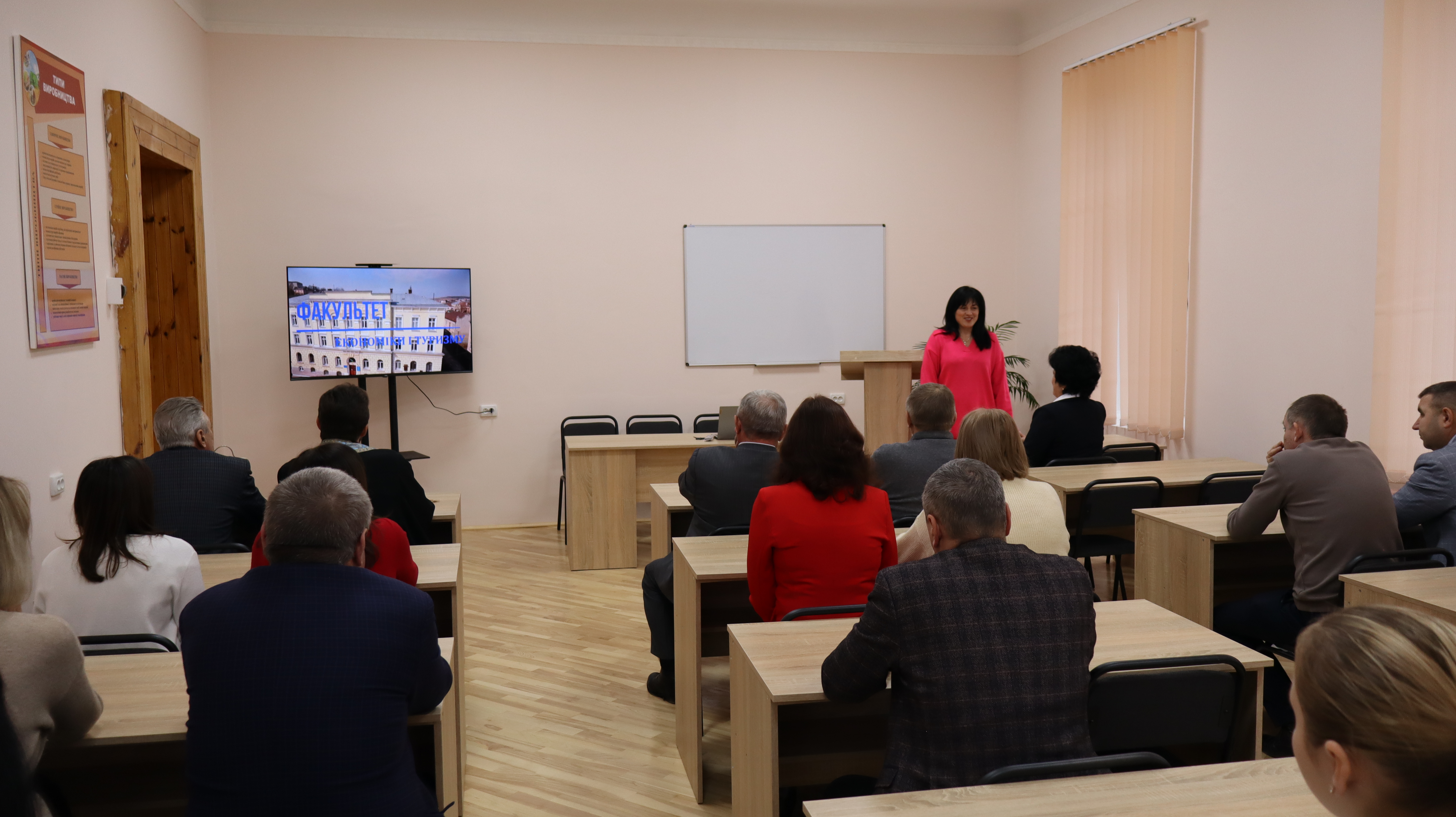 Захід розпочався із вітального слова декана факультету економіки і туризму, доцентки Любові ЯРЕМИ, яка наголосила на винятковій важливості відкриття оновленого та модернізованого лекційного кабінету «Організації виробництва та бізнес-планування» для факультету та закладу вищої освіти, який символізує наше прагнення до інновацій та якісної підготовки фахівців.
