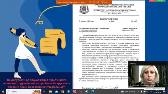 Відповідно до вимог положення «Про організацію практичної підготовки студентів НУБіП України» та «Інструкцій з дотримання правил поведінки в умовах воєнного стану в Україні та протиепідеміологічних заходів» та на виконання наказів ректора від 30.05.2023 р. № 550, від 24.01.2023 р. № 40 та розпорядження в.о. проректора з науково-педагогічної роботи Сергія Кваші від 31.05.2023 № 12, з метою формування безпечних умов проведення практичного навчання студентів бакалавратури та магістратури у 2 семестрі 2022-2023 н.р. на факультеті аграрного менеджменту проведено цикл інструктажів з охорони праці та безпеки життєдіяльності для практичного навчання.