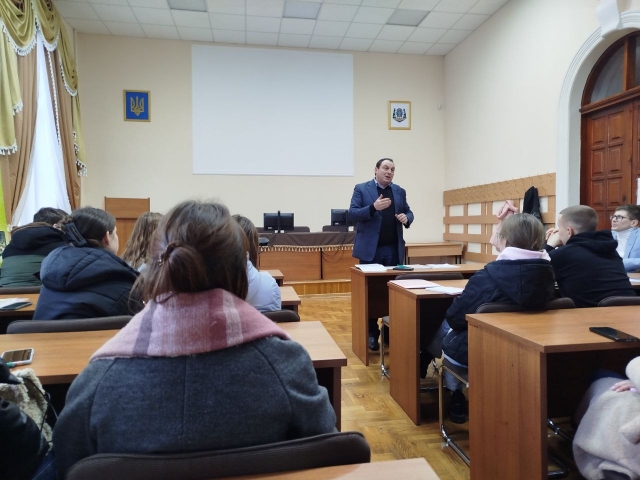 З Олександром Гаврилюком, заступником декана, обговорили також умови проживання в гуртожитках, можливості покращення побутових умов та забезпечення комфортного середовища для навчання. Олександр Сергійович також підняв питання про вимоги Закону України "Про державну таємницю". Особливу увагу приділив на відповідальності за порушення законодавства про державну таємницю.
