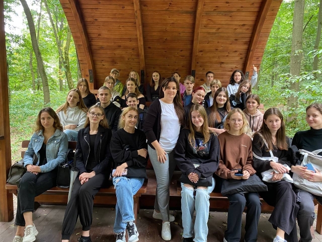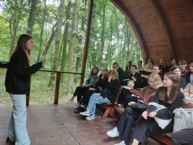 Наприкінці, група знайшла затишне місце для відпочинку та обговорень першого навчального місяця. Студенти із захватом ділилися враженнями від навчання, дисциплін і викладачів. Не обійшлось і без проблем та бентежних питань, але Ольга Василівна люб’язно допомогла їх всі вирішити.