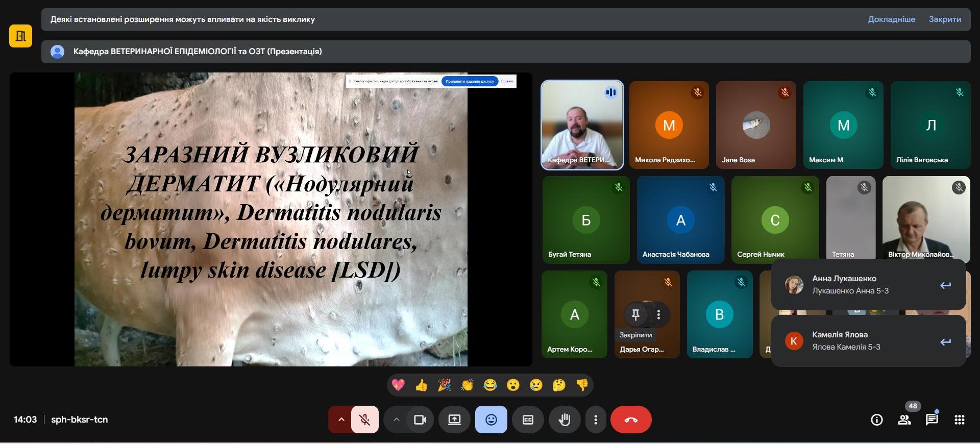 Лекція відбулася в інтерактивному форматі: студенти мали можливість ставити запитання, дискутувати щодо можливих сценаріїв розвитку епізоотичної ситуації та пропонувати власні підходи до боротьби з інфекцією. Такий формат дозволив поєднати глибокий теоретичний аналіз із практичною підготовкою майбутніх лікарів ветеринарної медицини.