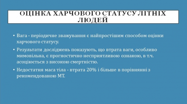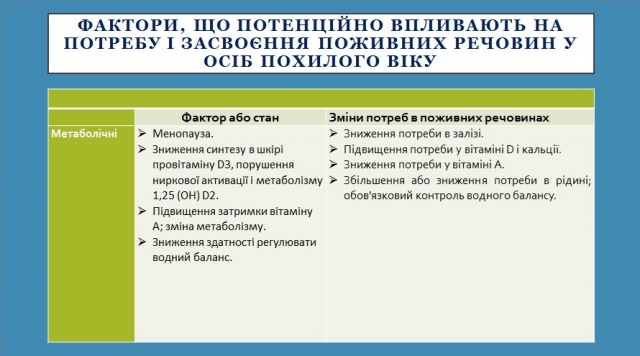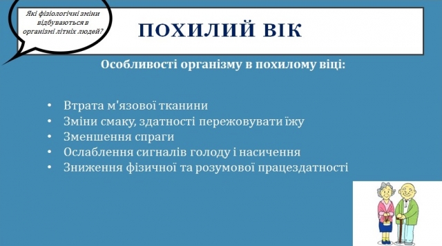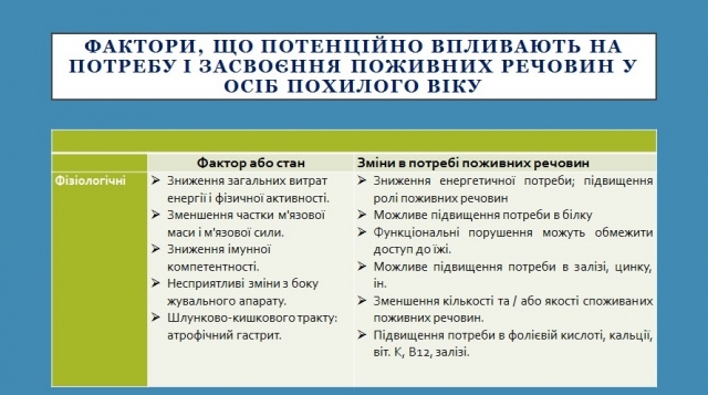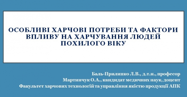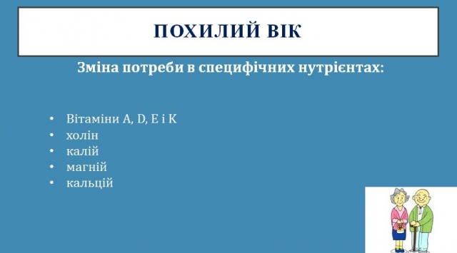 Особливі харчові потреби та фактори впливу на харчування людей похилого віку Л.В. Баль-Прилипко, д.т.н., професорО.А. Мартинчук, к.м.н., доцент пн, 15 чер 2020 - 03:00