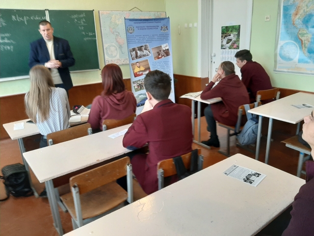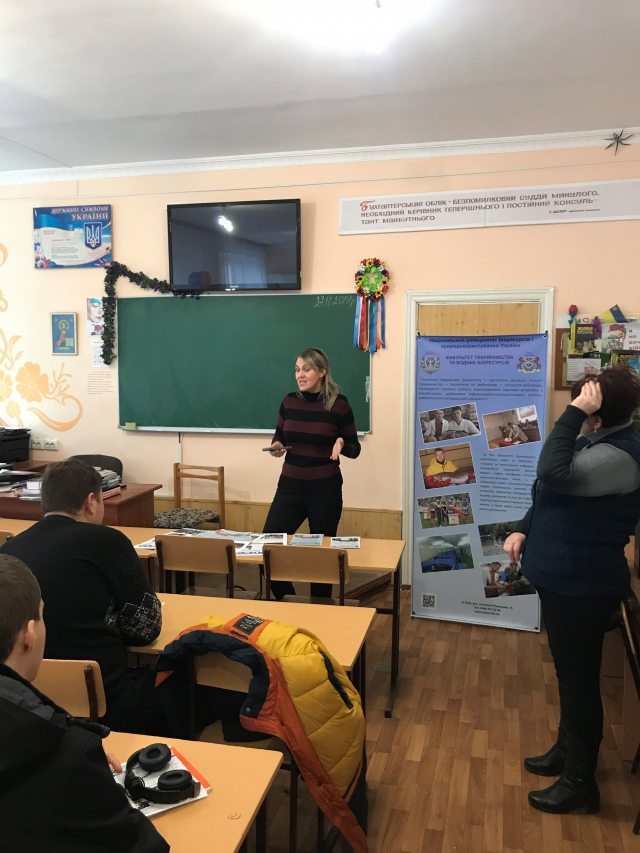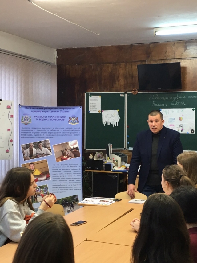 Під час зустрічі з учнями 11-х класів викладачі надали загальну інформацію про провідний аграрний заклад вищої освіти – Національний університет біоресурсів і природокористування України, було проінформовано учнів про умови та особливості вступної кампанії у 2020 році, переваги навчання та здобутки університету, світлини подій та культурно-масову роботу університету й факультету тваринництва та водних біоресурсів, роботу підготовчих курсів, престижність та затребуваність аграрних професій, учням та батькам роздані профорієнтаційні буклети, а також всі присутні мали можливість переглянути відеоролик та презентаційний матеріал про діяльність НУБіПУ.