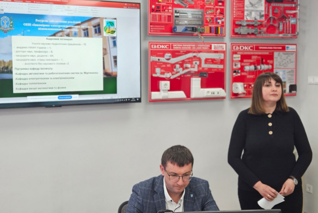 В навчально-науковому інституті енергетики, автоматики і енергозбереження відбулося засідання навчально-методичної комісії з розгляду освітніх програм підготовки здобувачів ОС «Бакалавр» та «Магістр» 2025 року вступу. Участь у засіданні взяли директор інституту Віктор КАПЛУН, керівник Центру забезпечення якості освіти Ярослав РУДИК, а також представники ради роботодавців: Богдан КАФТАН (директор ТОВ "Гарантенергогруп"), Олександр ЦІЛИК (інженер ТОВ "ВАП-БУД"), Віктор ПЕТРЕНКО (керівник відділу навчання ДП "Герц Україна"), Андрій СЕМЕНЧУК (керівник навчального центру «ДТЕК Мережі»), Тетяна ЖЕЛЄЗНА (експерт НТЦ "Біомаса"), Артур ЗАПОРОЖЕЦЬ (заступник директора Інституту загальної енергетики НАН України), Роман ПОЛІЩУК (державний експерт Міністерства енергетики України).