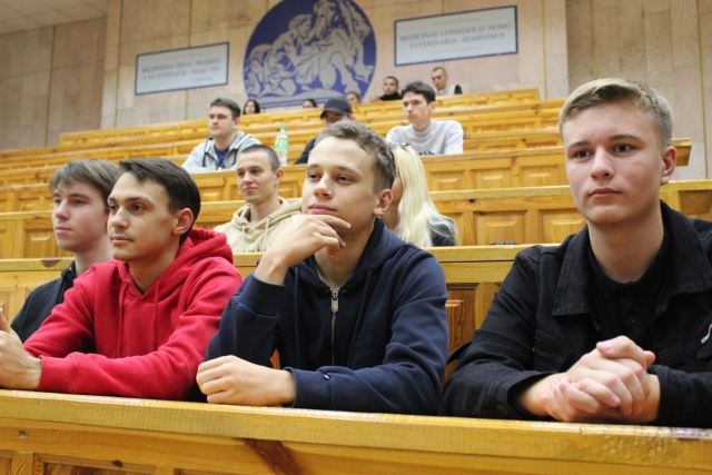 У вступному слові декан Микола Цвіліховський ознайомив здобувачів вищої освіти з подіями, що відбулися на факультеті та в Університеті. Підкреслив важливість факультету ветеринарної медицини НУБіП України, як центру ветеринарної освіти, науки, інновацій і практики в нашій державі. Акцентував увагу на розвитку освітніх і освітньо-наукових програм факультету, осучасненні матеріально-технічної бази факультету та інформував про те, що вже багато зроблено в плані створення принципово нових навчально-наукових і дослідницьких лабораторій та клінічних спеціалізованих кабінетів.