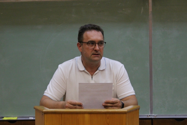 Заступник декана Сергій Деркач акцентував увагу здобувачів вищої освіти на питаннях організації освітнього процесу на факультеті у першому семестрі 2024-2025 н.р. Закликав здобувачів вищої освіти відповідально віднестися до навчання, не пропускати занять та дотримуватися правил поведінки в умовах воєнного стану під час навчання. Тримати тісний контакт з наставником групи і деканатом.