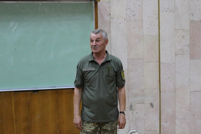 Доцент кафедри військової підготовки Анатолій Радченко розповів про специфіку навчання на кафедрі, можливості працевлаштування, а також запросив на навчання для здобуття звання молодшого лейтенанта, офіцера запасу.