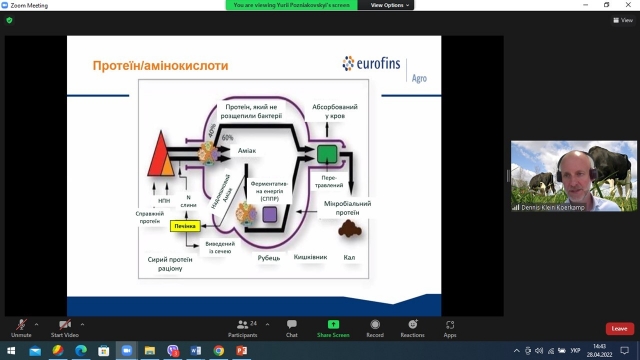 Синхронний переклад здійснював вихованець кафедри годівлі тварин та технології кормів ім. П.Д. Пшеничного – Юрій Позняковський.