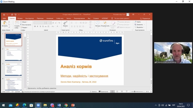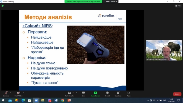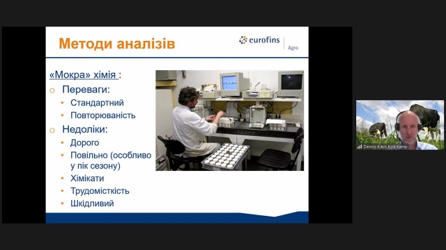 Потому модератор форуму професор Михайло Сичов запросив спікерів до слова. Про сучасні підходи до аналізу об’ємистих кормів доповів Dennis Klein Koerkamp – міжнародний консультант з питань годівлі ВРХ, технічний директор AVA Group, Eurofins Agro (Нідерланди).