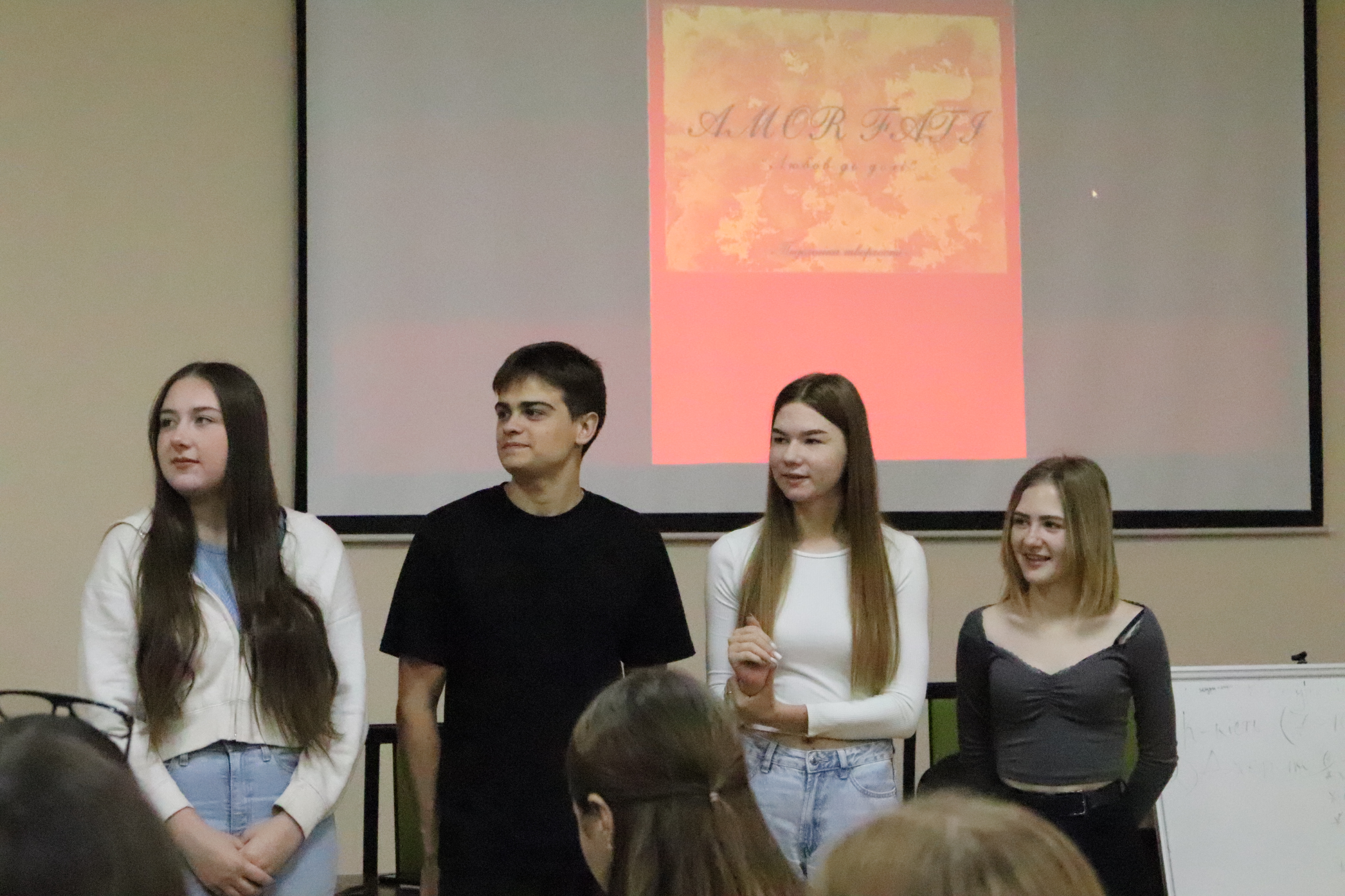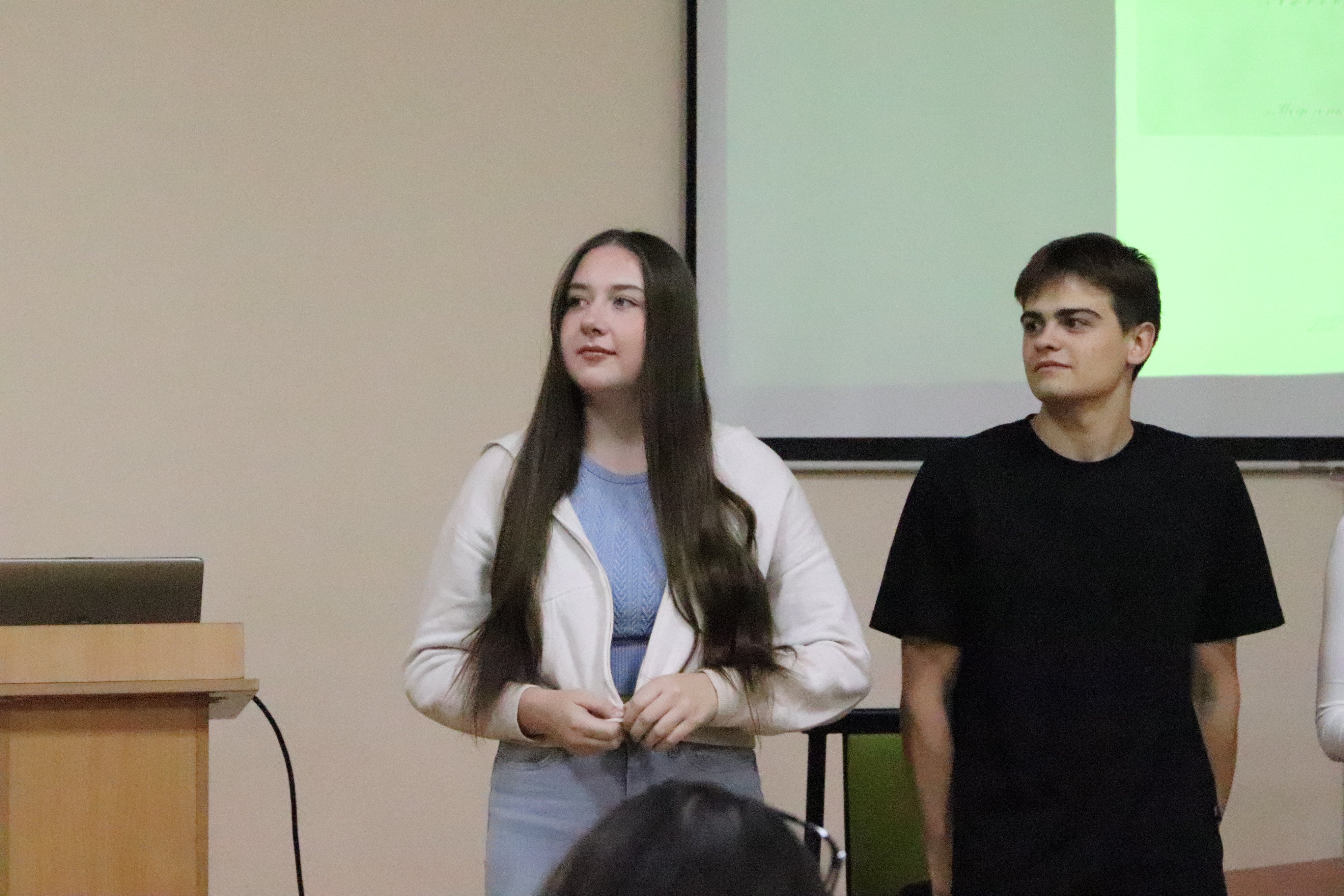 Студенти груп Журн-24001б та Журн-24002б розповіли першокурсникам, як створювали альманахи «Голоси майбутнього» та «Amor Fati». Головні редактори — Артем ОКСЕНИЧ і Дар’яна СКРИННІК — поділилися своїми враженнями та порадами: від ідеї створення команди до важливості своєчасної перевірки і ретельного редагування текстів. Заступники редакторів — Максим ТІМЧЕНКО та Олександр КУДРЯ — пояснили, як працювала редакторська колегія: редагування, правки та узгодження матеріалів. А дизайнери — Аліна САВЧУК, Олександра ТОЛОЧИНА, Софія МИКИТЕНКО та Поліна ВАСЬКО детально розповіли, як створювали макети альманахів. Вони поділилися, як відбирали найкращі фотографії, поєднували кольори й шрифти. Дівчата підкреслили, що це була клопітна, але надзвичайно цікава робота, яка дала можливість проявити креативність і відчути себе справжніми дизайнерами.