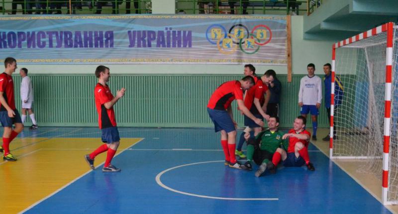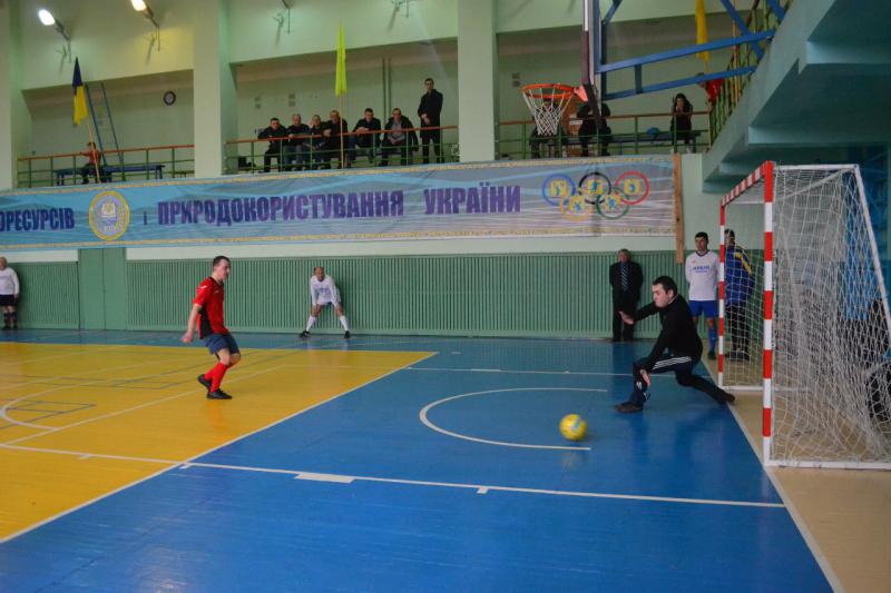 Початок півфінального матчу склався для нас дуже складним – на перших хвилинах пропустили три м'ячі. Напружений перший тайм закінчився з рахунком 4:1 на користь агробіологів. Проте на початку 2-го тайму команди обмінялись голами і рахунок до середини тайму тримався 5:2. На останніх хвилинах заключного тайму наш колектив проявив характер та самовіддачу і зміг забити 2 голи підвівши рахунок до 5:4. Сили залишали обидві команди, але на останніх секундах матчу наша команда змогла зрівняти рахунок матчу, який становив 5:5 після фінального свистка. Команди очікувала серія післяматчевих