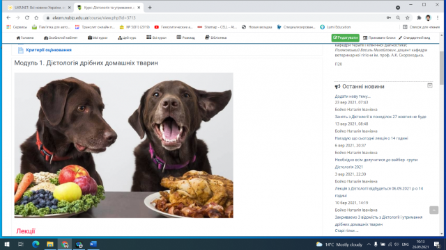 У цьому році дану дисципліну обрали 108 студентів. Питання правильної годівлі здорових собак, котів та інших дрібних домашніх тварин (як і дієтотерапія за різноманітних хвороб) є дуже актуальним, тому цікавить майбутніх лікарів ветеринарної медицини. Для опанування цієї дисципліни на навчальному порталі Elearn створено ЕНК «Дієтологія і утримання дрібних домашніх тварин», куди зараховані всі студенти, і систематично викладаються матеріали для освоєння навчального і практичного курсу.