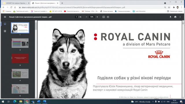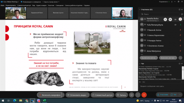 Перша онлайн-лекція з дисципліни «Дієтологія і гігієна утримання дрібних домашніх тварин» відбулася за участі експерта з наукових комунікацій компанії «Рояль Канін Україна»