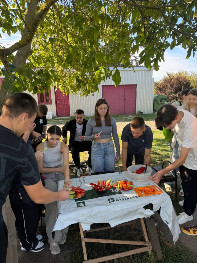 Завершальною нотою заняття стала дегустація овочів, а саме: помідорів, огірків та новинки - гібриду перцю Хабахот F1, який за шкалою гостроти Сковілла має 350 000 SHU, та за пекучістю переважає навіть перець чілі. Все це овочеве різноманіття було вирощено у теплиці НЛ «Плодоовочевий сад».