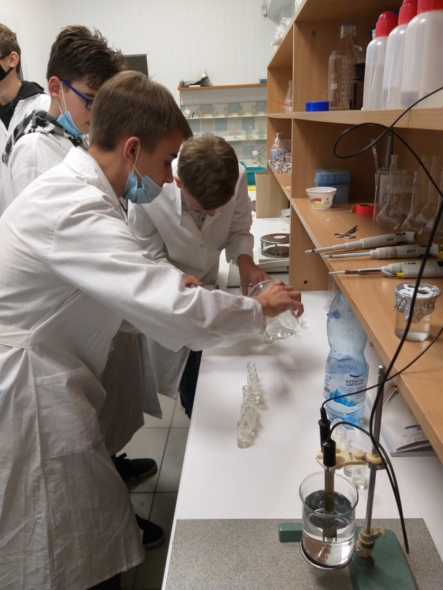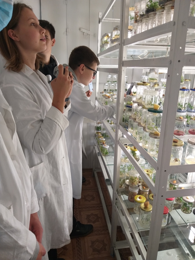 Наші гості мали можливість відвідати культуральну кімнату, де вирощуються рослини в культурі in vitro та ознайомитись із особливостями їх культивування. Крім того, дослідники-початківці під пильним наглядом Кваско О.Ю. мали змогу власноруч приготувати живильне середовище для вирощування рослин.