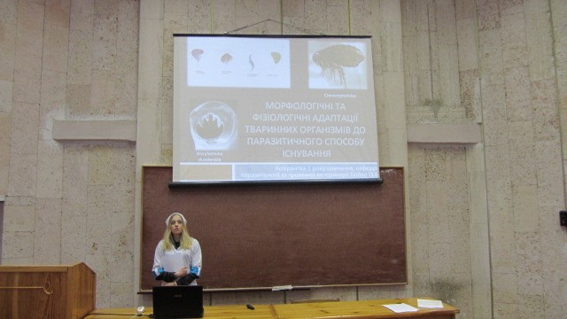 28 березня свою першу лекцію для студентів магістратури першого року навчання з дисципліни «Глобальна паразитологія» прочитала аспірантка Бойко Ольга Богданівна. Тема лекції «Морфологічні і фізіологічні адаптації тваринних організмів до паразитичного способу існування».