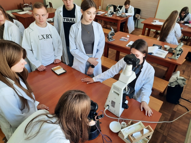 Студенти першого курсу факультету захисту рослин, біотехнологій та екології (спеціальність 202 «Захист і карантин рослин») упевнено опановують найважливішу дисципліну – ботаніку, а саме на одному із занять вони вивчали морфологічну та анатомічну будову листка різних видів рослин (кафедра ботаніки, дендрології та лісової селекції), зокрема виявили особливості внутрішньої диференціації та спеціалізації окремих груп тканин мезофілу листка: стовпчастої й губчастої, а також специфіку його будови в представників клад Monocots та Eudicots. Морфологічні особливості листків, як Голонасінних (Gymnosperms), так і Покритонасінних (Angiosperms), вивчали поєднуючи можливості навчальної лабораторії ботаніки, гідроботаніки та геоботаніки кафедри ботаніки, дендрології та лісової селекції, «Лісівничо-просвітницького центру» та ботанічного саду НУБіП України.