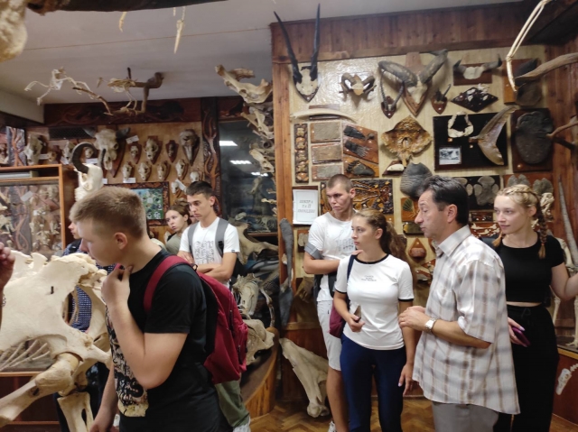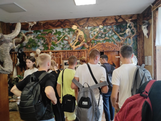 Не оминули своєю увагою студенти й ще одну цікаву «родзинку» нашого Університету – музей анатомії тварин кафедри анатомії та гістології тварин ім. акад. В.Г Касьяненка ветеринарного факультету. Цікаву екскурсію провів кандидат ветеринарних наук, доцент кафедри анатомії та гістології тварин Микола Стегней. Що вразило студентів з перших кроків – дизайн коридорів та кабінетів. Кожен сантиметр стін яскраво оформлений опудалами, зображеннями різноманітних тварин.
