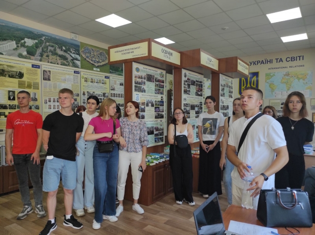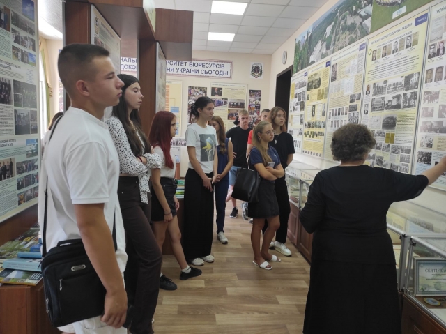 Після відвідування ботанічного саду, першокурсники, разом з куратором, пішли досліджувати музеї. Першим 9-та група відвідала музей історії Університету. Екскурсію музеєм провела кандидат педагогічних наук, доцент Тетяна Чумак, яка почала цікаву та захоплюючу подорож стежками історії із трипільської культури, познайомила з історією агрономії та нашого закладу. Студенти мали можливість побачити археологічні знахідки, подарунки від інших університетів та тих, хто колись навчався в НУБіП.