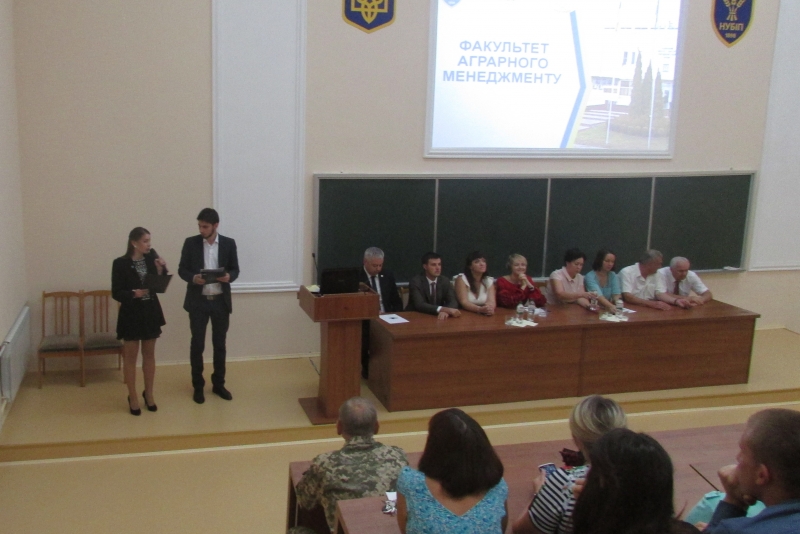 Сьогодні на факультеті аграрного менеджменту відбулись урочисті збори з нагоди свята 1 вересня. Серед запрошених гостей були присутні Радник з питань сільського господарства Посольства Франції в Україні Ніколя Перен, а також випускники факультету - Генеральний директор асоціації «Український клуб аграрного бізнесу», Голова Ради роботодавців факультету Тарас Висоцький, керівник проекту Федерального Міністерства продовольства та сільського господарства Німеччини Ольга Трофімцева.