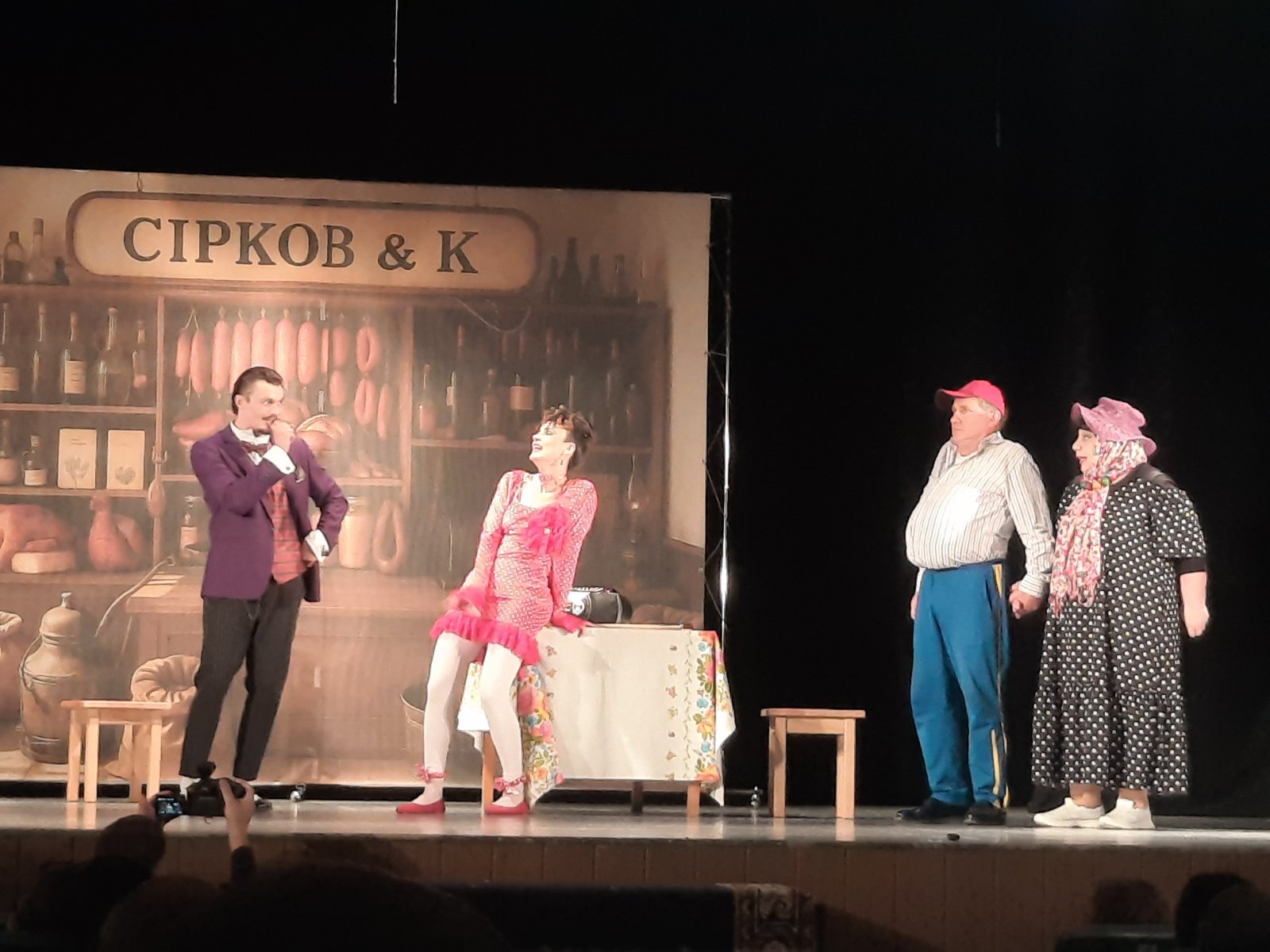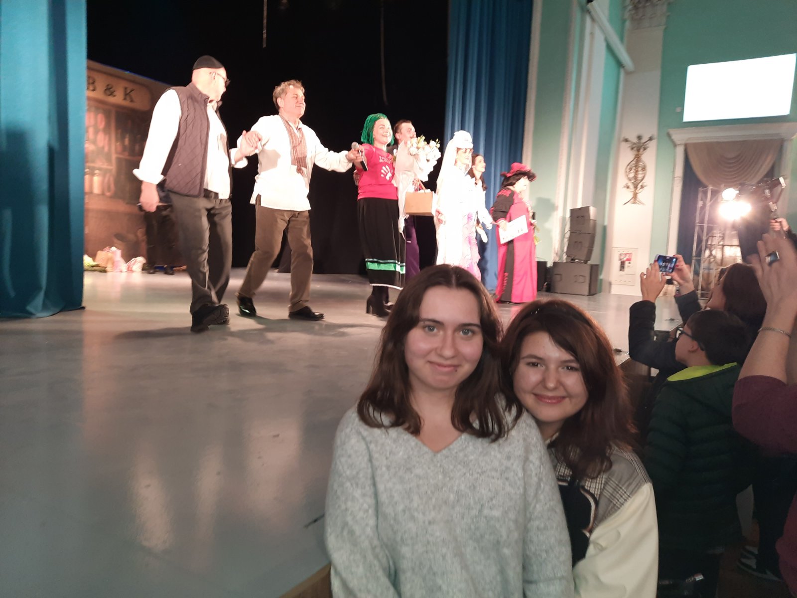На виставу ми прийшли з букетом квітів і наприкінці спектаклю вручили його народній артистці України Тамарі Яценко, яка втілює образ матері Проні, але за своє життя вона більше 800 разів зіграла роль легендарної Проні. Ми також приготували листівки й отримали автограф Тамари Яценко.