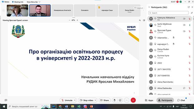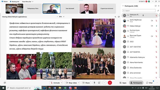 Завідувач кафедри культурології Ірина Майданюк та кафедри фізичного виховання Микола Костенко запросили першокурсників до участі у різноманітних гуртках та секціях, які функціонують у НУБіП України. Це і танцювальні колективи, і спортивні секції, і творчі гуртки.