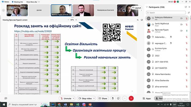 Про організацію освітнього процесу студентам розповів начальник навчального відділу Ярослав Рудик. Він провів екскурсію по сайту факультету та ознайомив присутніх з основними аспектами освітньої діяльності.