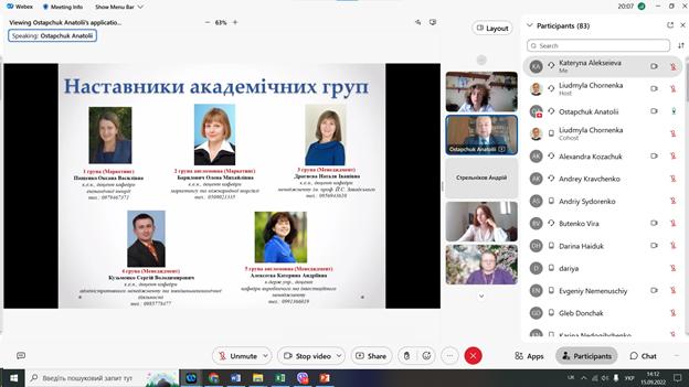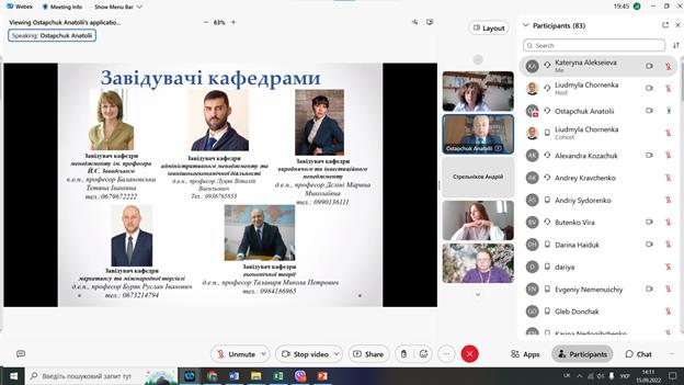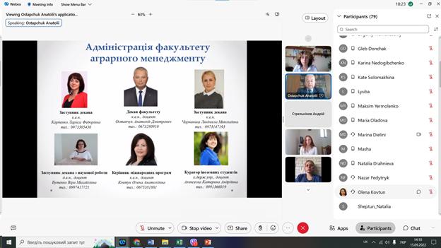 Про основні напрямки діяльності кафедр факультету аграрного менеджменту розповіли завідувачі кафедр – завідувач кафедри адміністративного менеджменту та ЗЕД Віталій Луцяк, завідувач кафедри менеджмент ім. Й.С Завадського Тетяна Балановська, завідувач кафедри виробничого та інвестиційного менеджменту Марина Дєліні, завідувач кафедри економічної теорії Микола Талавиря та завідувач кафедри маркетингу та міжнародної торгівлі Руслан Буряк.