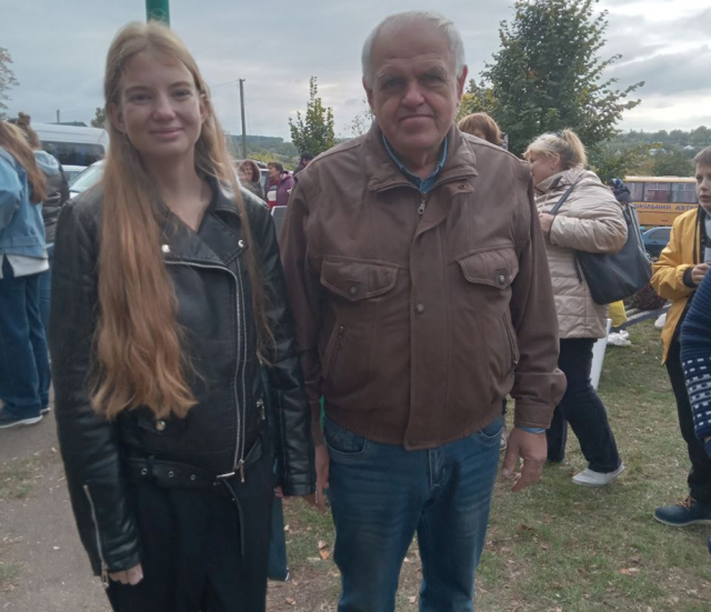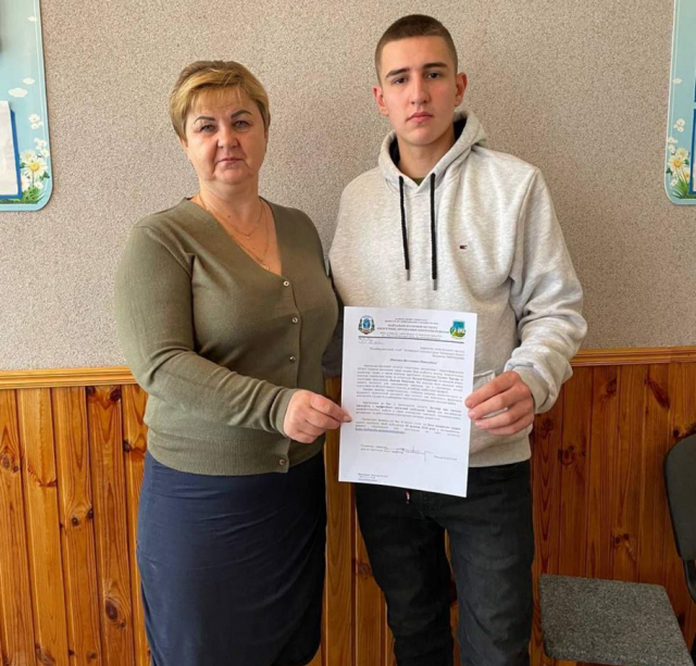 - Дар’я Гальпрейтуг, студентка групи ЕЕЕ-24001б, разом із директором Підвисоцького ліцею ім. Т.Г. Шевченка Підвисоцької сільської ради Голованівського району Кіровоградської області Сергієм Гаврилюком,