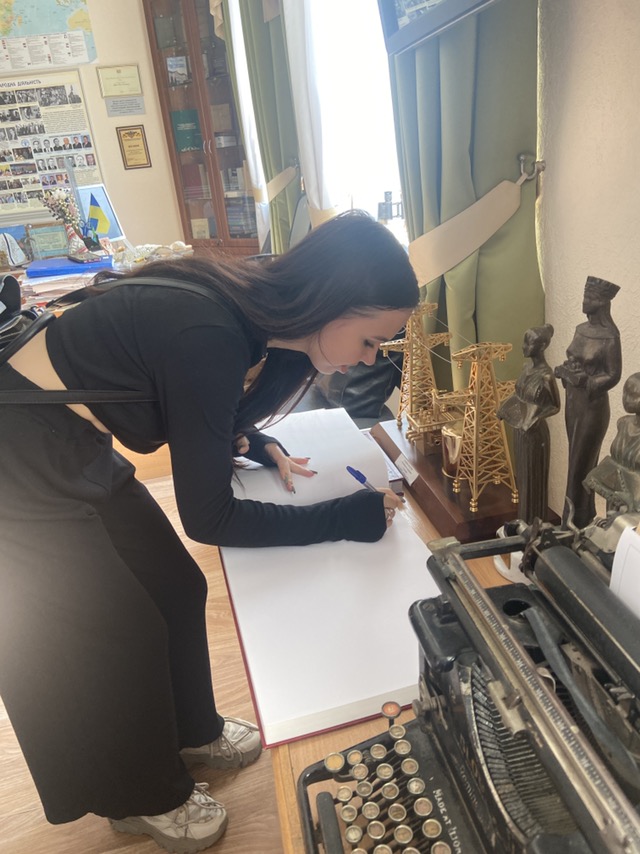 Куратор і студенти висловлюють вдячність директору музею історії НУБіП України Марії Анатоліївні за цікаву та змістовну екскурсію, про що радо залишили запис із щирими словами подяки та побажаннями на майбутнє в Книзі відгуків музею.