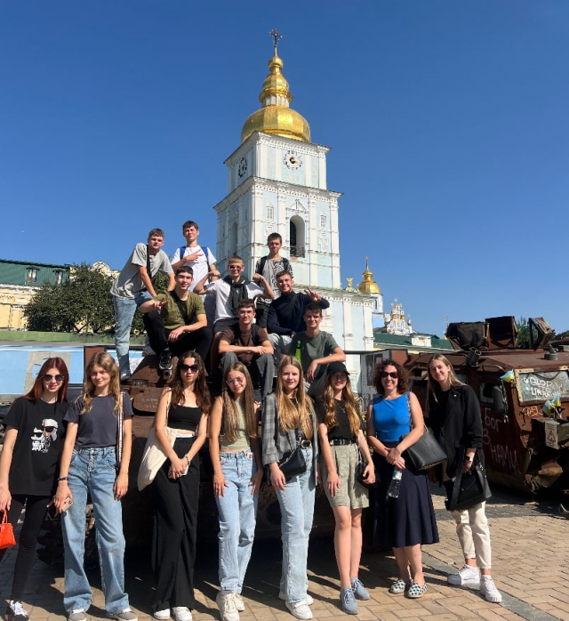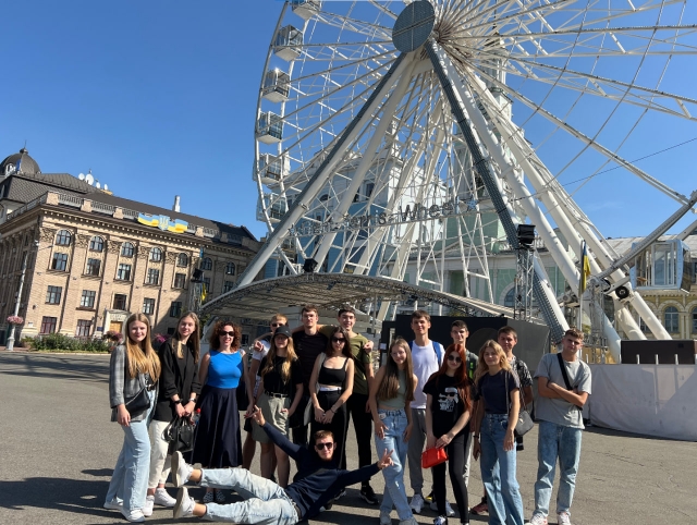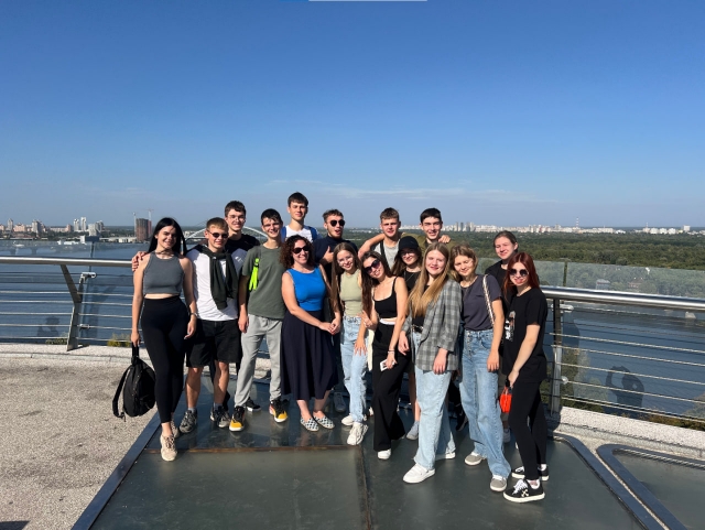 Прогулюючись скляним мостом, всі мали змогу милуватися неймовірними краєвидами: з одного боку видно куполи київських церков, а з іншого — широку річку з мостами, що перетинають її. Особливо красиво тут ввечері, коли міст підсвічується, створюючи чарівну атмосферу. Це місце дарує відчуття свободи та захоплення масштабом краси столиці. Найяскравіші моменти очікували їх на Андріївському узвозі. Ця мальовнича вулиця зачарувала студентів своєю старовинною архітектурою та неповторною атмосферою. Вони прогулювалися уздовж художніх галерей і сувенірних крамничок, де можна було побачити роботи українських майстрів. Деякі студенти придбали сувеніри, щоб зберегти пам’ять про цей день. Тут куратор також розповів про творчих діячів, які колись жили й працювали на цій вулиці, що ще більше поглибило розуміння культурного багатства Києва.