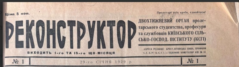 Газета «Реконструктор» виходила з 29 січня 1929 р. до 24 червня 1930 р. Загалом вийшло 25 номерів. Оглядово про газету ми писали тут https://nubip.edu.ua/news/rekonstruktor-pershyy-drukovanyy-chasopys-kyyivskoho-silskohospodarskoho-instytutu-1929-1930-0