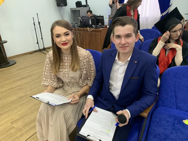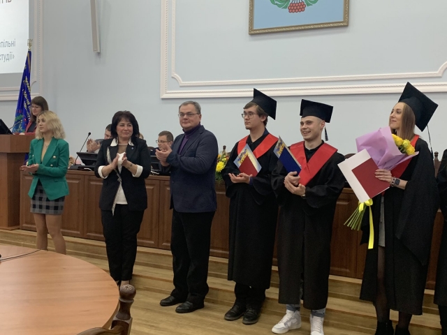 До привітань долучився ректор нашого університету Станіслав Ніколаєнко та почесний гість, голова Наглядової ради Микола Томенко: вони вручили дипломи з відзнакою найкращим студентам та звернулися із вітальними побажаннями до усіх винуватців свята. Естафету святкового дійства підхопила декан гуманітарно-педагогічного факультету Інна Савицька, побажавши не втрачати в собі людину та фахівця на життєвій ниві. Разом із завідувачем випускової кафедри Олександром Шевчуком вона вручила дипломи магістрам-міжнародникам.