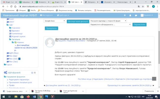Про проведення online занять студентам завчасно було повідомлено за допомогою навчальної платформи E-learn у НУБіП України та мобільного додатку Viber.