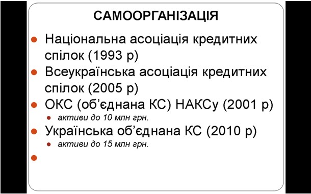Організаційні засади діяльності кредитних спілок, формування та розподіл капіталу і доходів регулюється ЗУ «Про кредитні спілки».