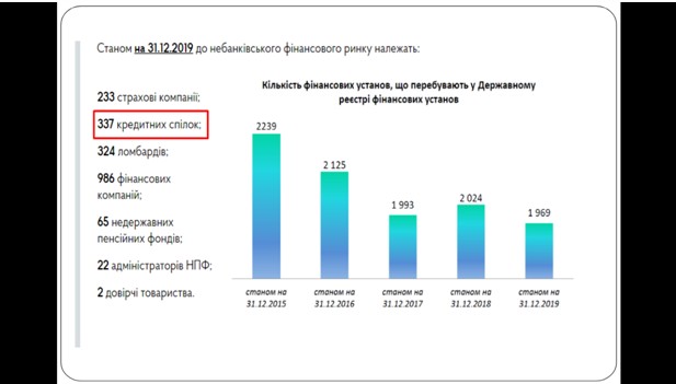 Станом на 31 грудня 2019 року до небанківського фінансового ринку належать 377 кредитних спілок, що налічують 751,7 тис. членів.