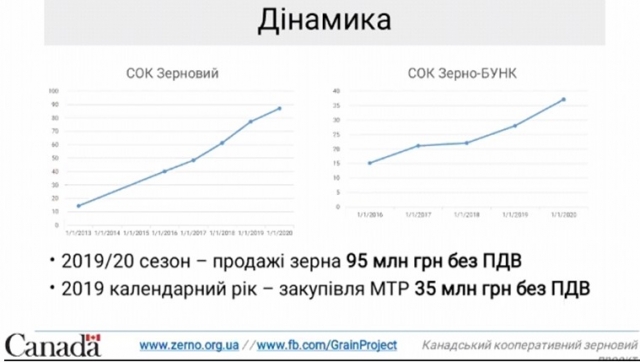 Фермерські господарства, будучи членом кооперативу, мають можливість здавати зерно на сушіння, зберігання, а також реалізацію зерна за вигідними цінами тоді, коли цього потребують. Сьогодні функціонують два сільськогосподарські обслуговуючі зернові кооперативи СОК «Зерновий» та СОК «Зерно-БУНК».
