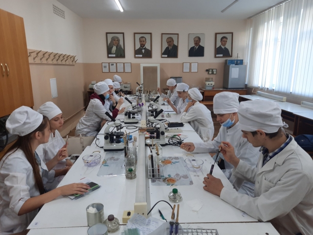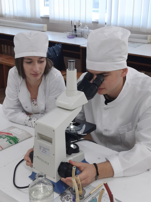 В навчальних лабораторіях кафедри, оснащених матеріалами і обладнанням для проведення навчального процесу, студенти в інтенсивному режимі, користуючись можливістю працювати офлайн, опановують класичні мікробіологічні методики, зокрема техніку культивування і дослідження мікроорганізмів в живому і пофарбованому стані, приготування поживних середовищ, вивчають антибіотикочутливість у бактерій, мікрофлору об’єктів зовнішнього середовища тощо.