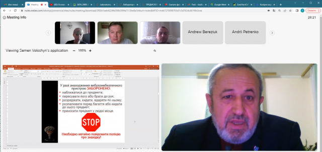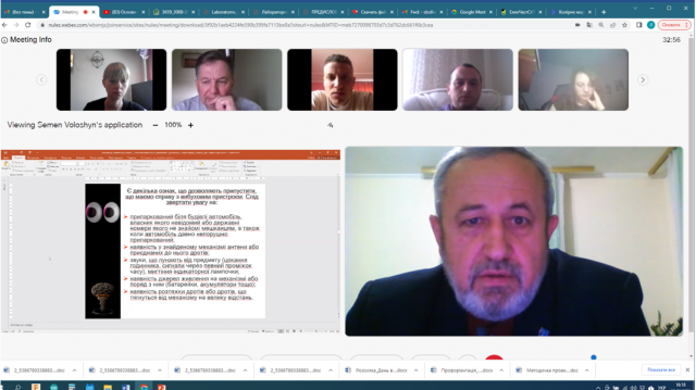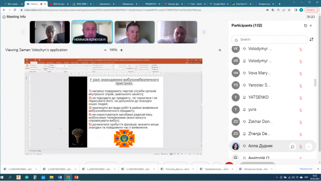 Першим питанням порядку денного, згідно листа Міністерства освіти і науки України від 22.04.2022 р №1/4408-22, була вкрай актуальна і важлива тема сьогодення, яка торкається безпеки наших студентів і викладачів: «Про уникнення вражими мінами і вибухонебезпечними предметами та поведінка у надзвичайних ситуаціях».