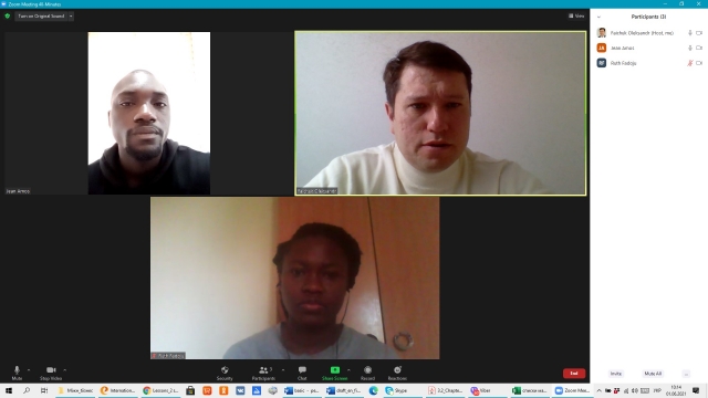 Впродовж весняно-літнього семестру доцент кафедри адміністративного менеджменту та ЗЕД Олександр Файчук продовжив процес активного викладання курсів для студентів магістратури спеціальності «Менеджмент ЗЕД»: Техоуа Кадіо Жан Амос (Tehoua Kadio Jean Amos) (Кот-д’Івуар) і Фадоджу Руф (Fadoju Ruth) (Нігерія) .