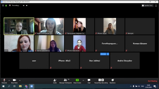 23 березня 2020 року, другою парою (лекція доцента Слободяник Анни) у межах дисциплін «Математичні моделі в менеджменті і маркетингу» – викладач: доцент Слободяник Анна та «Фінансова санація і банкрутство» викладач: доцент Самофалова Марія – було проведено on-line-лекцію на тему «Моделювання управлінських рішень малого і середнього бізнесу в умовах економічної кризи та карантинних заходів» за участю студентів магістрів факультету аграрного менеджменту II-го року навчання спеціальності менеджмент, ОП «Менеджмент організації і адміністрування» та представників малого та середнього бізнесу, з чисельністю працівників 100 і більше. Студентам про захід, заздалегідь, було повідомлено на порталі Elearn, у розділі новини.