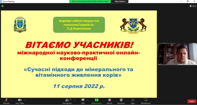 11 серпня 2022 року на кафедрі годівлі тварин та технології кормів ім.П.Д.Пшеничного відбулась міжнародна науково-практична онлайн конференція присвячена мінеральному та вітамінному живленню корів. Понад 60 учасників з різних куточків світу об’єдналися для обговорення актуальних питань живлення корів.