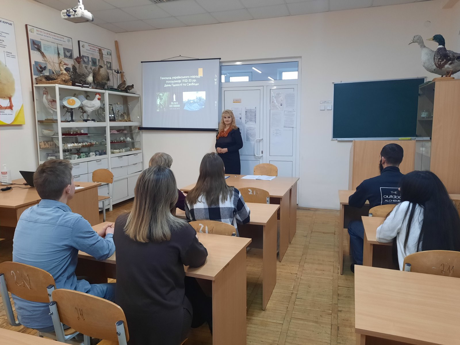 Важливою складовою виховного процесу стали лекції-бесіди та лекції-диспути національно-патріотичного спрямування. Під час заходів, присвячених українським традиціям, святу Покрови та Дню захисника і захисниць України, акцентовано увагу на історичних витоках свята, його символічному значенні та ролі в сучасному суспільстві. Лекційно-дискусійні заходи, присвячені трагічним сторінкам історії України, зокрема Голодомору 1932–1933 років та подіям, пов’язаним із Днем Гідності та Свободи, сприяли формуванню історичної пам’яті, патріотичної свідомості та стійкої громадянської позиції студентської молоді.