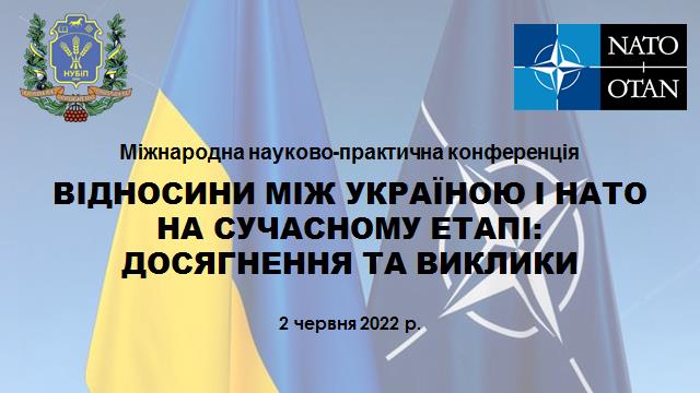 Кафедра організувала й провела Міжнародну науково-практичну конференцію «Відносини між Україною і НАТО на сучасному етапі: досягнення та виклики» (м. Київ, 02 червня 2022 р.). За результатами роботи конференції підготовлено збірник тез доповідей, який розміщено на сайті кафедри.