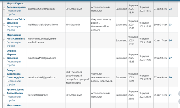 08.12.2025р. розпочалася передостання сесія для студентів 4 курсу НУБіП України. Провчившись кілька місяців, студенти вийшли на рубіжну лінію контролю, коли потрібно в стислій формі повторити все, що вивчили з початку семестру. Комусь це вдається відносно легко, комусь складніше. Однак можна запевнити, в цей період серед студентів просто неможливо зустріти байдужих. Понад 40 студентів різних спеціальностей університету здали першій залік з вибіркової дисципліни «Лідерство та управління кар’єрою». Приймали залік викладачі кафедри економіки: к.е.н., доцент Нагорний Віталій Володимирович і старший викладач Коваленко Лариса Вікторівна.