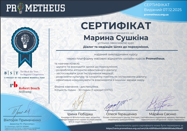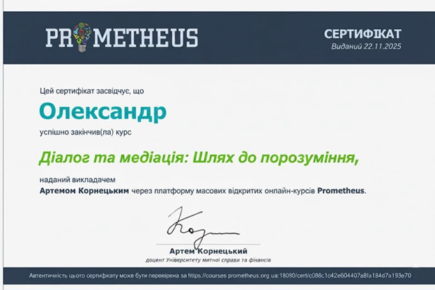 А ще отримали сертифікати з курсів: «Побудова успішної кар’єри» і «Діалог та медіація. Шлях до порозуміння».