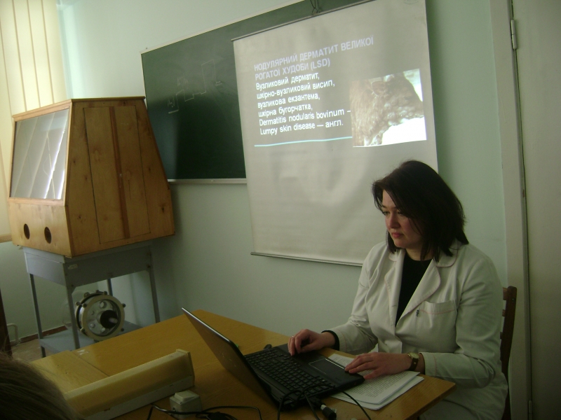 Доцент Ганна Володимирівна Козловська ознайомила слухачів курсів ФПК із сучасною інформацією щодо поширеного нині нодулярного дерматиту, його діагностики та профілактика і заходів боротьби.